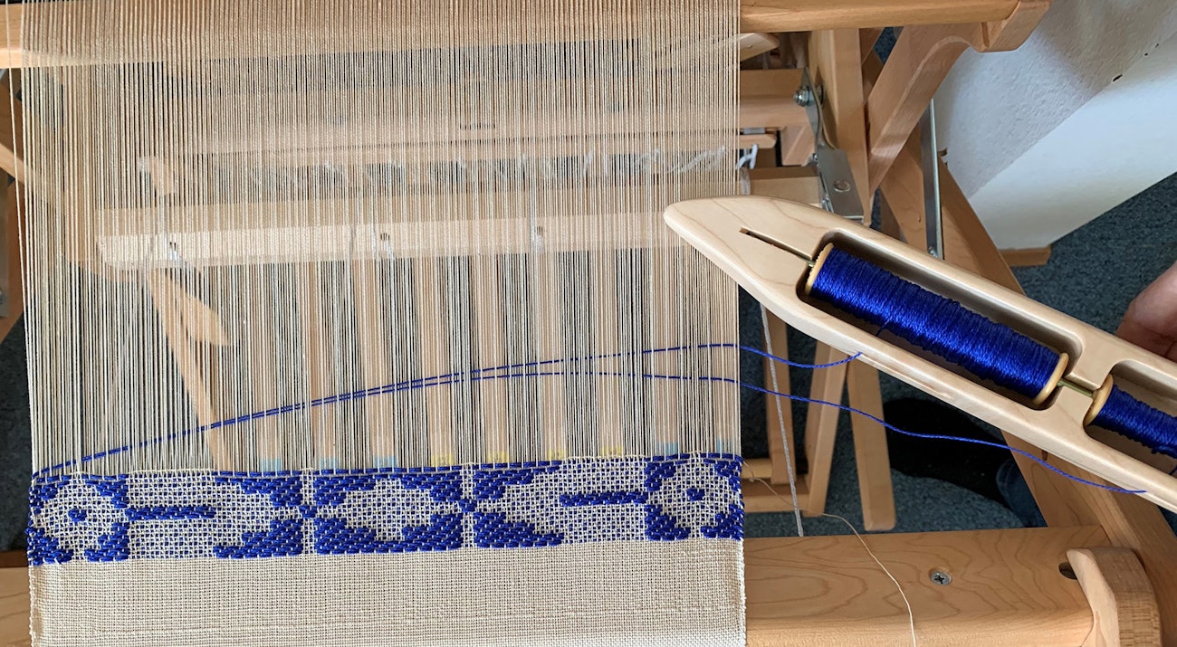 Another option is to use a two-bobbin shuttle. Managing this shuttle takes a bit of practice at first, but you soon learn to throw it with just the right force to turn the two threads together.