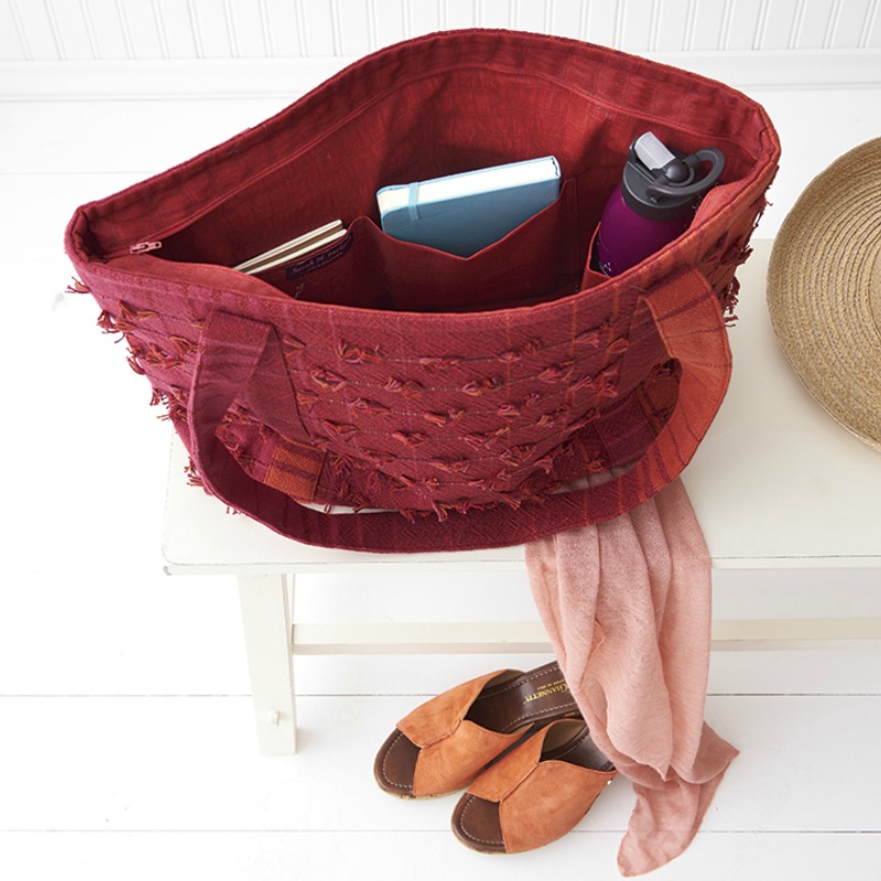 Whether you‘re packing a laptop or a tablet, notebooks or a planner, a textbook or the mystery you‘re reading, Sarah H. Jackson’s fabulous Shaggy Travel Tote from the May/June 2015 issue of Handwoven has room to carry it all—and a water bottle, too!