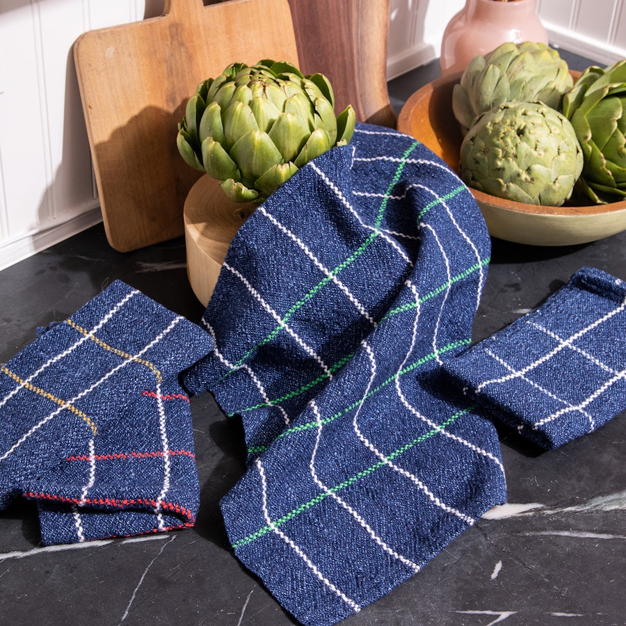 LoginThese mostly plain-weave napkins have a few stripes of basketweave in both warp and weft. Susan wove them using 6-shafts and two colors of navy. But, with the variety of 8/2 cotton colors available, we challenge you to design your own set, maybe using that huge cone of cotton you have left over from a past project and some smaller cones of coordinating colors that are cluttering up your stash.