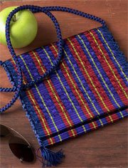 Rosalie Neilson invented a clever warp honeycomb to add to the design. It's fun, it's easy, and it's on four shafts. You may not be able to find the exact yarns used in this pattern but 5/2 bamboo at 2,100 yd/lb would probably work out well at the same sett. Use multiple strands of the bamboo to create a thick cord for the weft and use it for plied cord handle too!