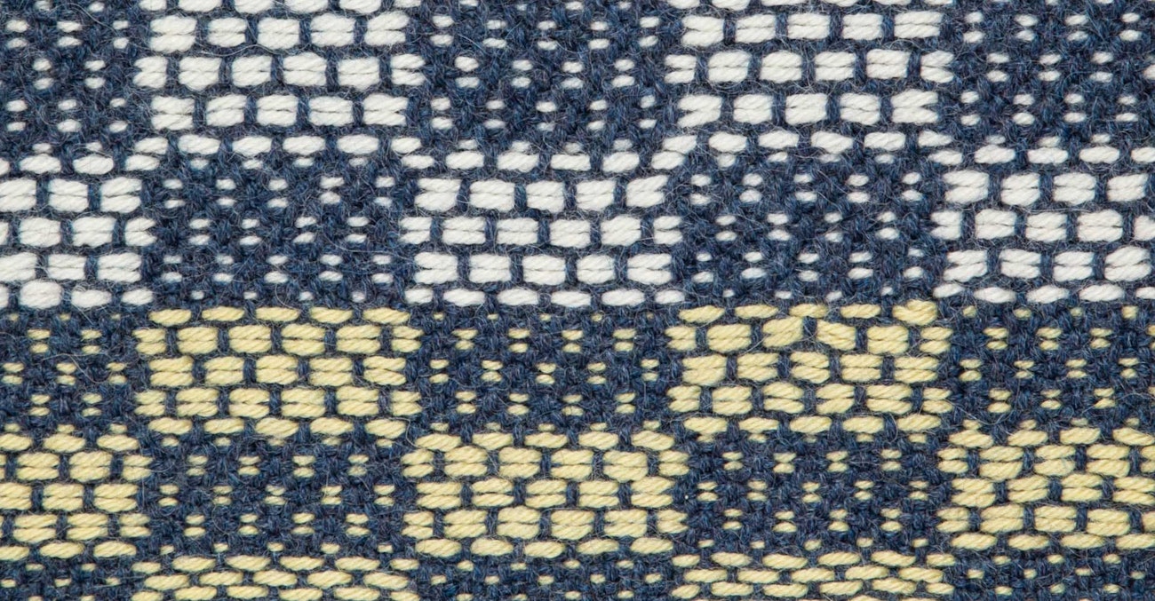 Setts: 10 epi; 12 ppi (10 of plain-weave background, 2 of doubled outline pick).