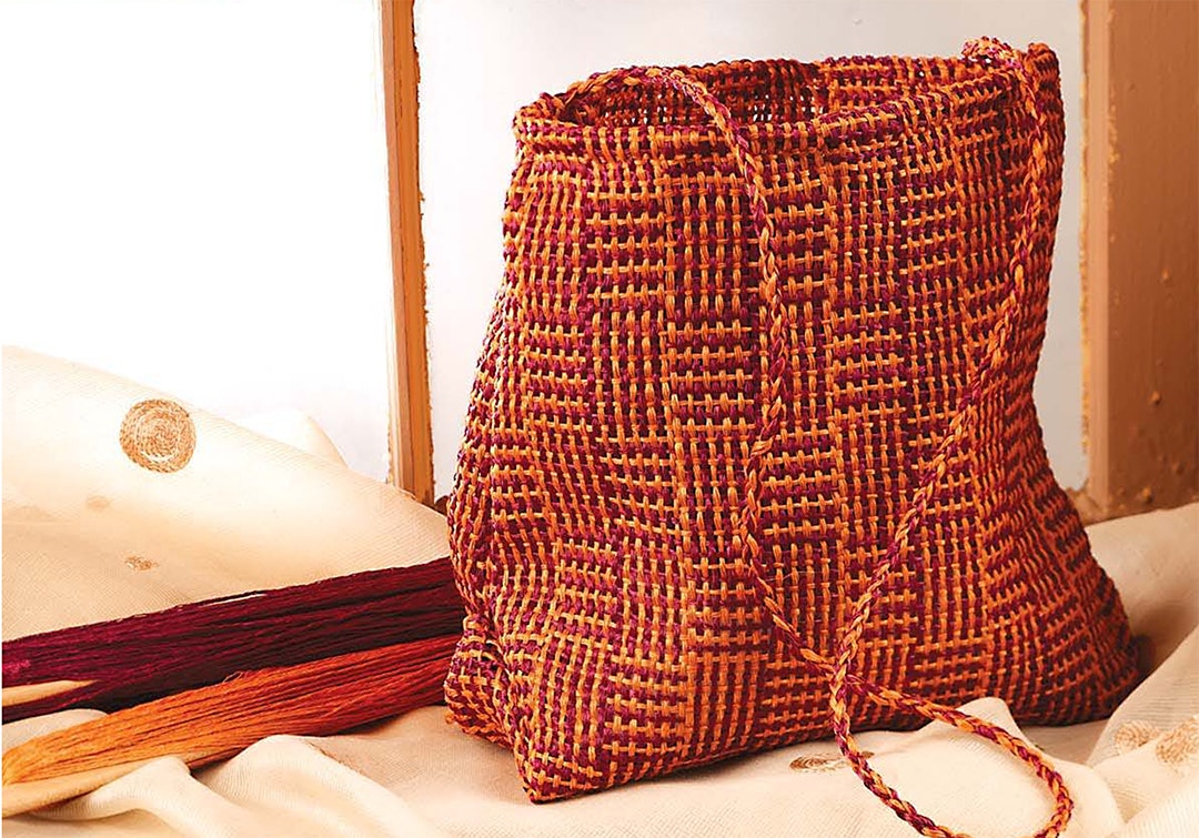 Liz Gipson‘s Raffia Tote (above), from Handwoven‘s Design Collection 20, uses log cabin color and weave in a project that can be completed over a single weekend. You can weave it on either a four-shaft or rigid-heddle loom.