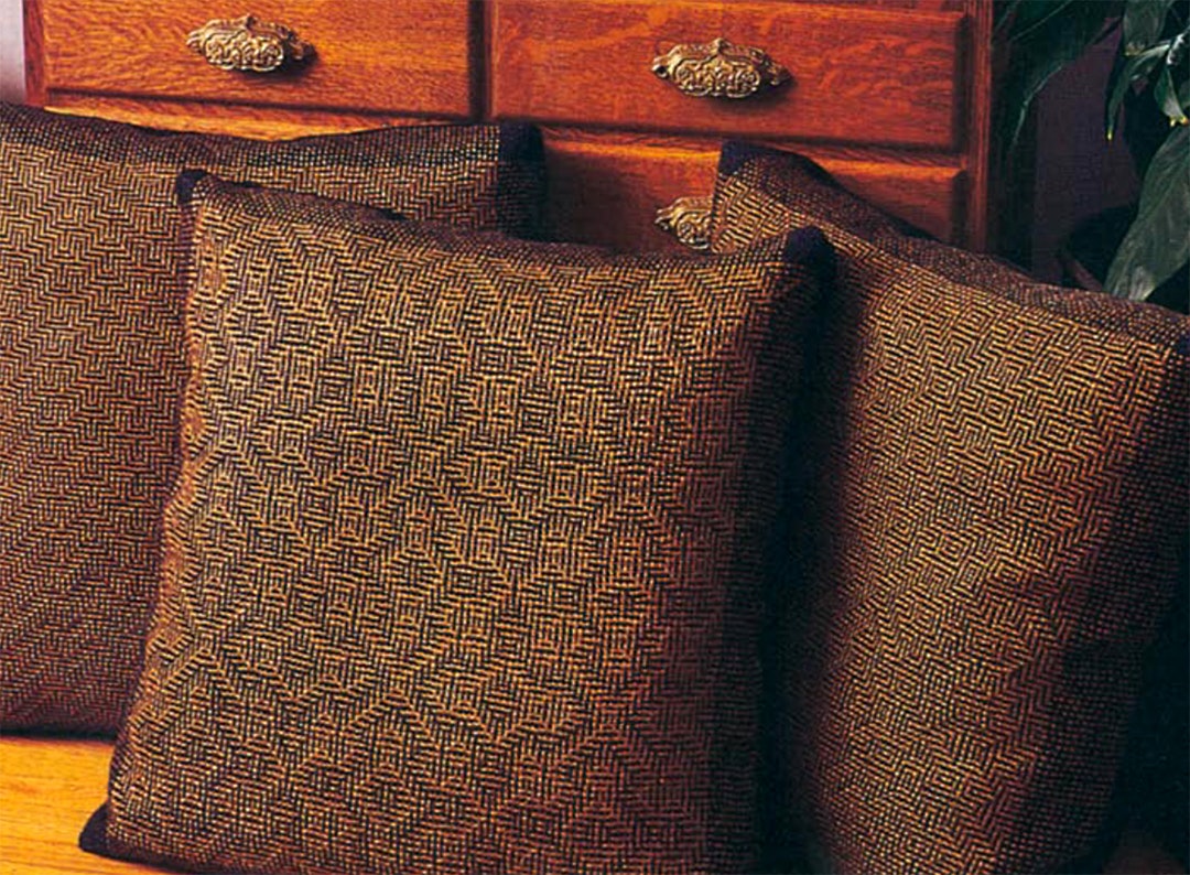 You‘ll find the draft for Jane Fournier‘s Linen Shadow-Weave Pillows (above) in the Best of Handwoven: Reader‘s Choice eBook, or in November/December 1994. They would dress up a comfortable chair nicely!