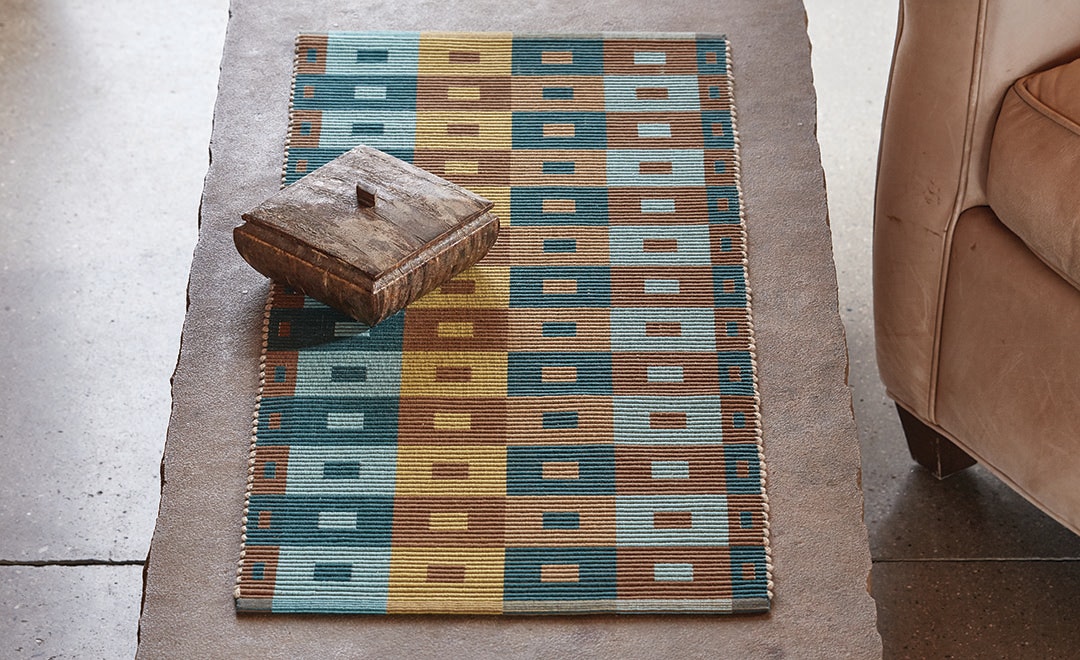 Anita Thompson‘s Cornucopia Placemats and Napkins (above), from September/October 2014, are woven in overshot on opposites and plain weave with inlay. They‘ll look lovely gracing your table all year—but you also have plenty of time to weave them before next Thanksgiving‘s dinner!