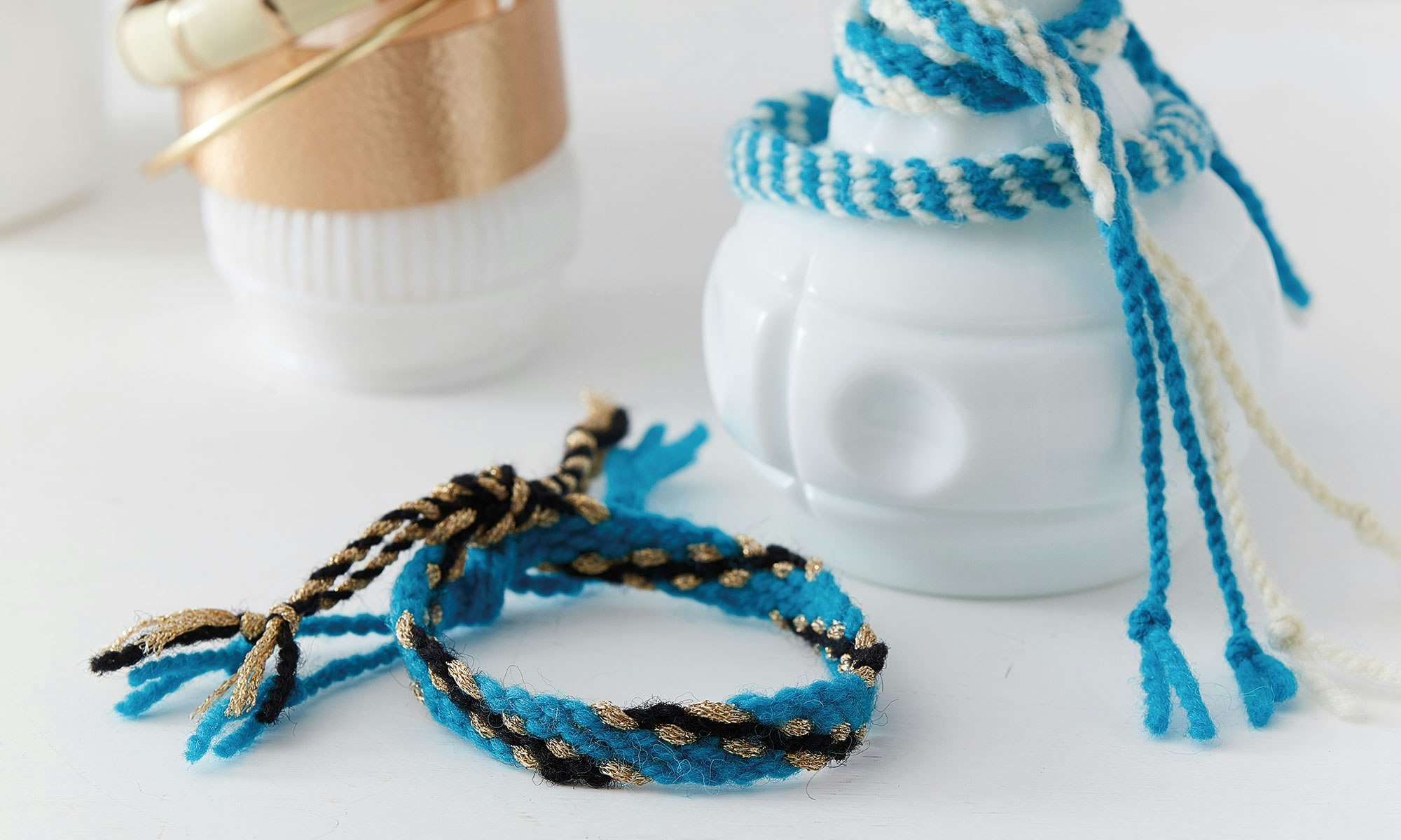 Or why not try making a pair of Fingerwoven Bracelets (below)? No loom is needed—Carol James shows you how using a pair of chopsticks held down with painter‘s tape.