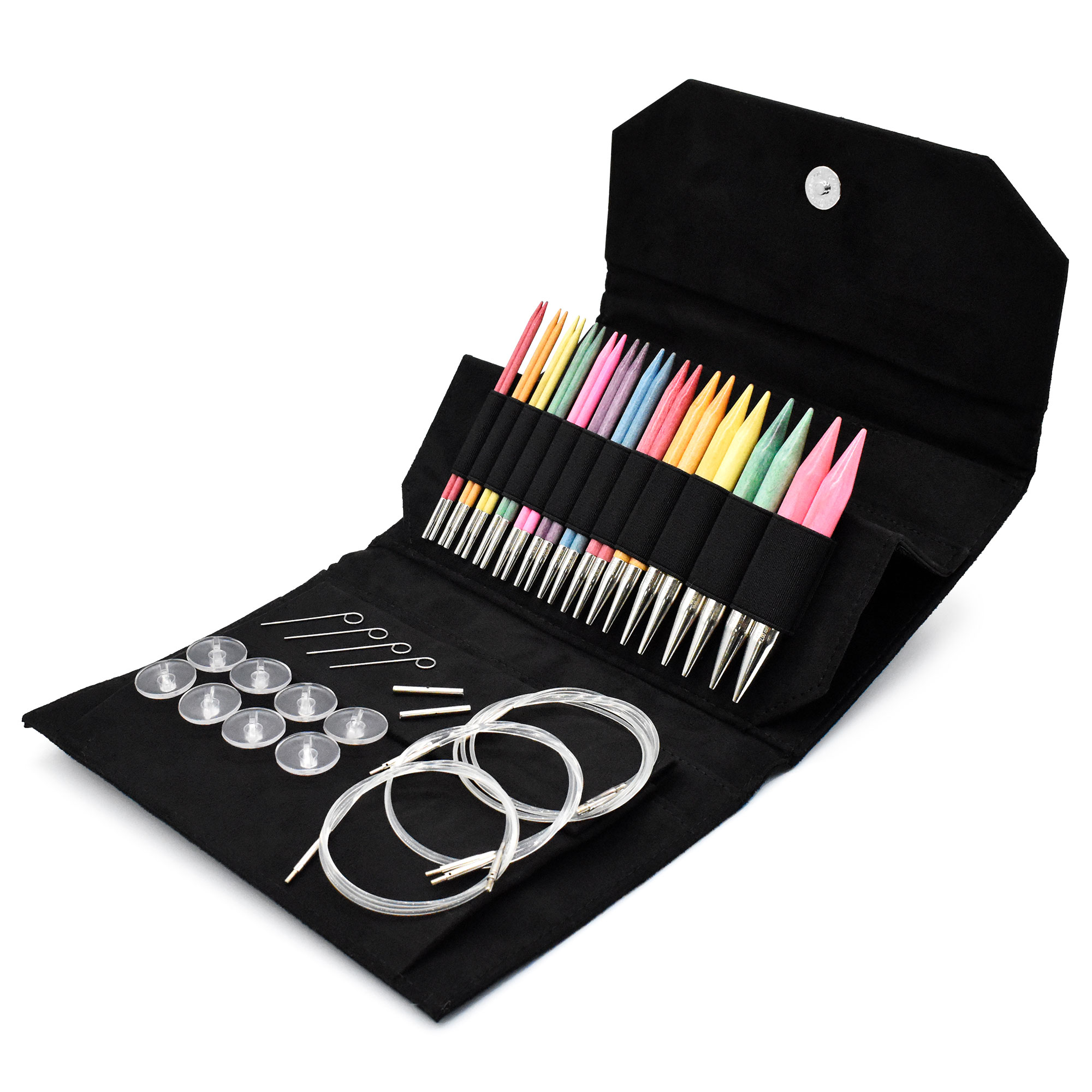 Knitting Fever’s LYKKE COLOUR 5" Interchangeable Needle Set comes with a Black Vegan Suede Case. These beautiful notions are made with real, ethically sourced, and lightweight birchwood. LYKKE: Make happy! Value $150. Learn more.