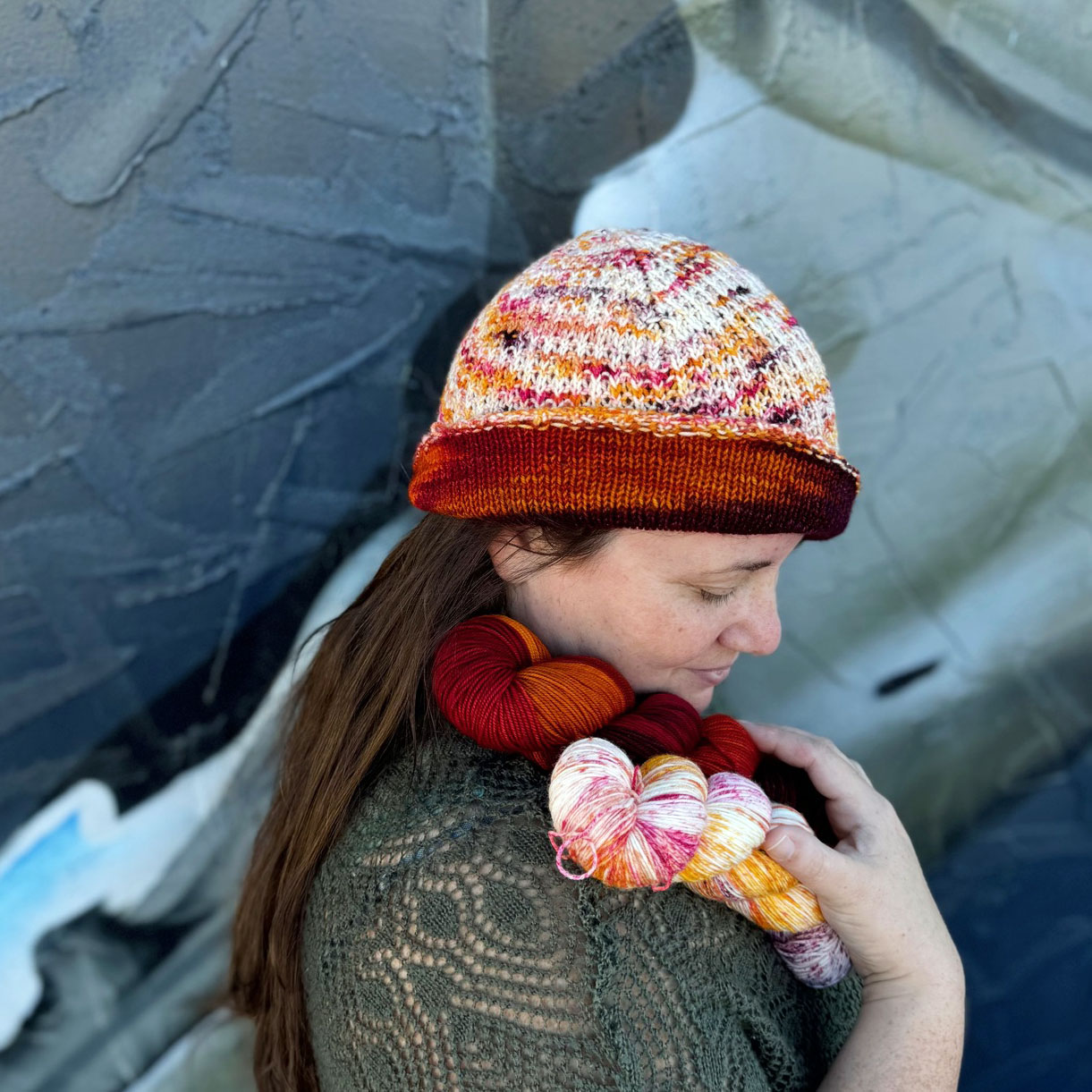 The Telemark hat is a unisex, easy-to-knit, reversible beanie that is perfect for any winter outing. This kit includes 2 skeins of 100% superwash Merino wool in gorgeous Copperberry and Sumac colorways hand-dyed in Montana by Mountain Colors. Available online in any combination of your choice! Value $60. Learn more.