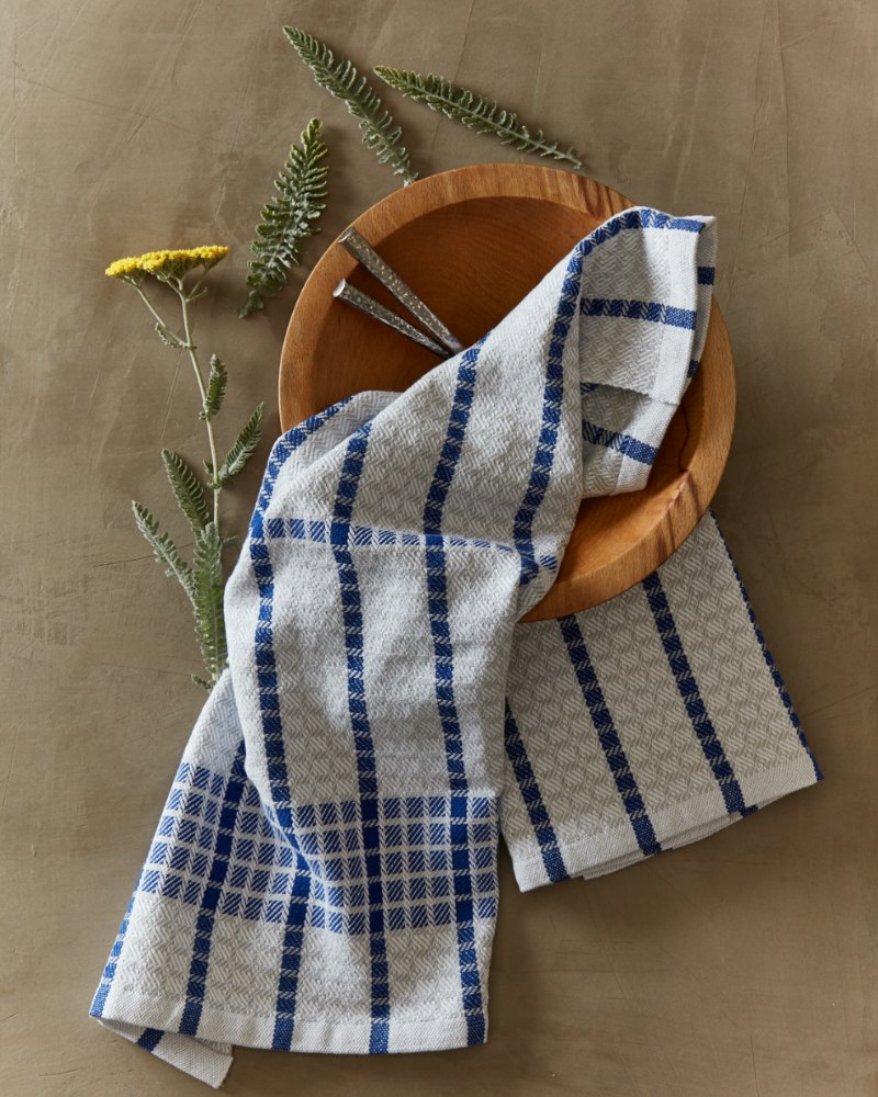 Weaving inspiration can come from anywhere as Connie Westbrook shows in her Pool-Inspired Towels featured in Handwoven March/April 2018, that she based on the tiles in the pool at the recreation center where she swims laps. The 8-shaft turned twill pattern uses white, blue and grey to mimic the lanes in a public pool and also the tiling around the edges. Weave your way back to the gym with these 3 towels with 2 treadling variations! —Susan