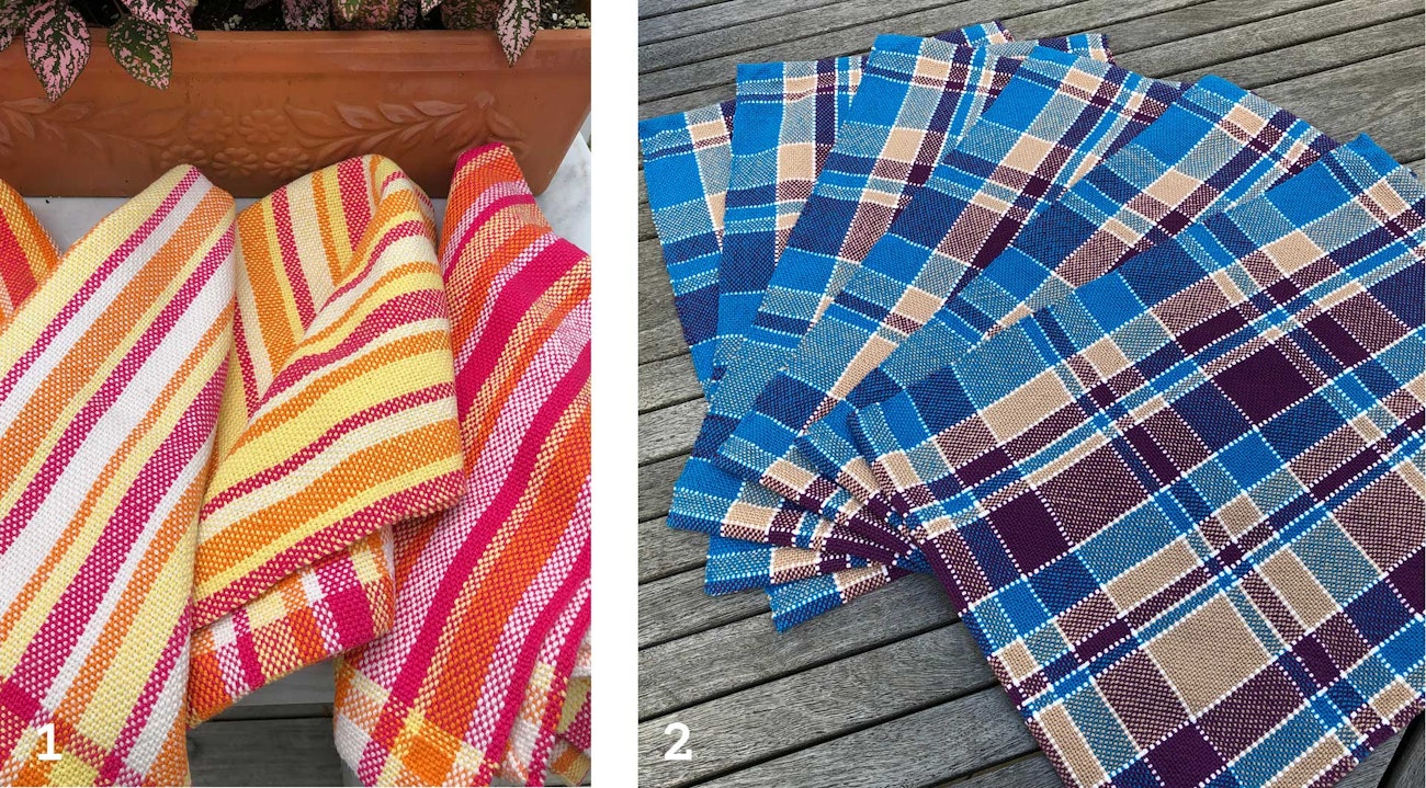 Left: Christine repeated three Fibonacci numbers to design her towel stripes. Right: You can mix up the Fibonacci numbers for a dynamic design, such as the one Christine developed for these placemats. All photos by Christine Jablonski unless otherwise noted