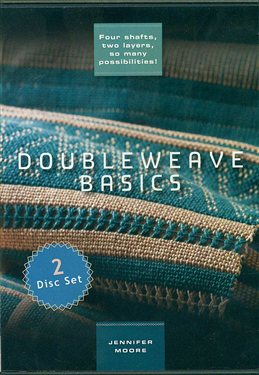 In the video, Doubleweave Basics, disk one, at 10 minutes and 30 seconds, Jennifer Moore says "light threads on shafts 1 and 3 and darks on shafts 2 and 4." She meant to say, "light threads on shafts 1 and 2, and dark threads on 3 and 4."