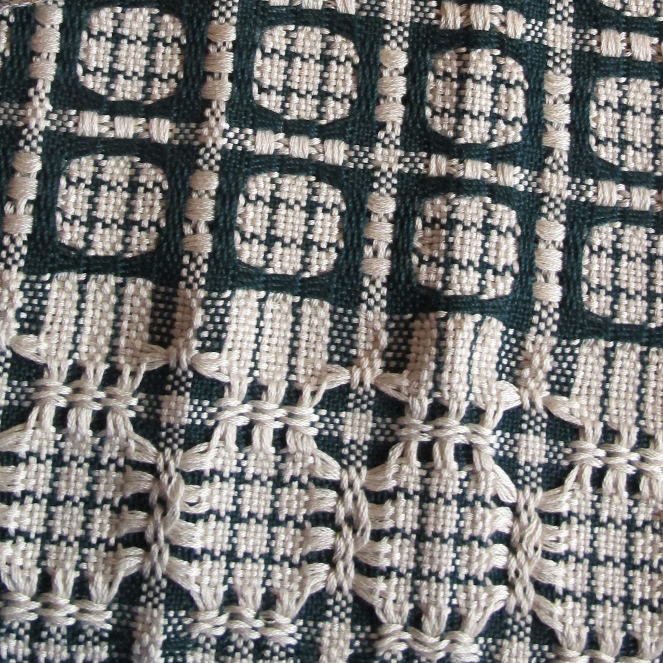 She also mentions cottons, chenilles, and even boucles as yarns she has used in DDW. If you are wondering about sett, Janney starts with setting her yarns as she would for 2/2 twill and then guess what? She samples and adjusts her sett as needed and recommends that you do the same. Just goes to show that we aren’t the only ones suggesting you sample to determine whether the yarn you have will work in the pattern you want to weave.