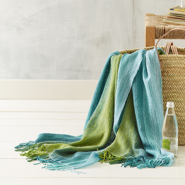 However, whenever the structure is plain weave, you can use any of the magazine's rigid-heddle instructions for a shaft loom. In the case of the Travel Shawl, the structure is plain weave. The fabric is woven in three different panels that are sewn together. One warp color order is used for the center panel and a different warp color order for the two side panels. The weaving width of each of the three panels is 9-3/5". Therefore the width of the entire shawl is 28-4/5". If your loom is wide enough, you can weave the shawl in a single panel (wind the warp in the order of: first side panel, center panel, second side panel). The sett is 10 epi, so sley 1/dent in a 10-dent reed and thread for plain weave (usually 1-2-3-4 on a shaft loom). Weave raising shafts 1-3 vs 2-4. Note that in general, rigid-heddle looms allow less loom waste than shaft looms. This rigid-heddle project calls for 18" loom waste; I'd add 12" to that amount.