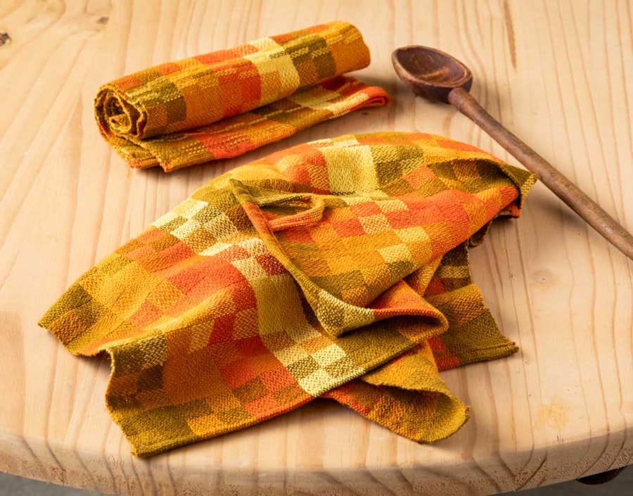 LoginDesigner/weaver Regina McInnis wove two coordinating towels on one warp.