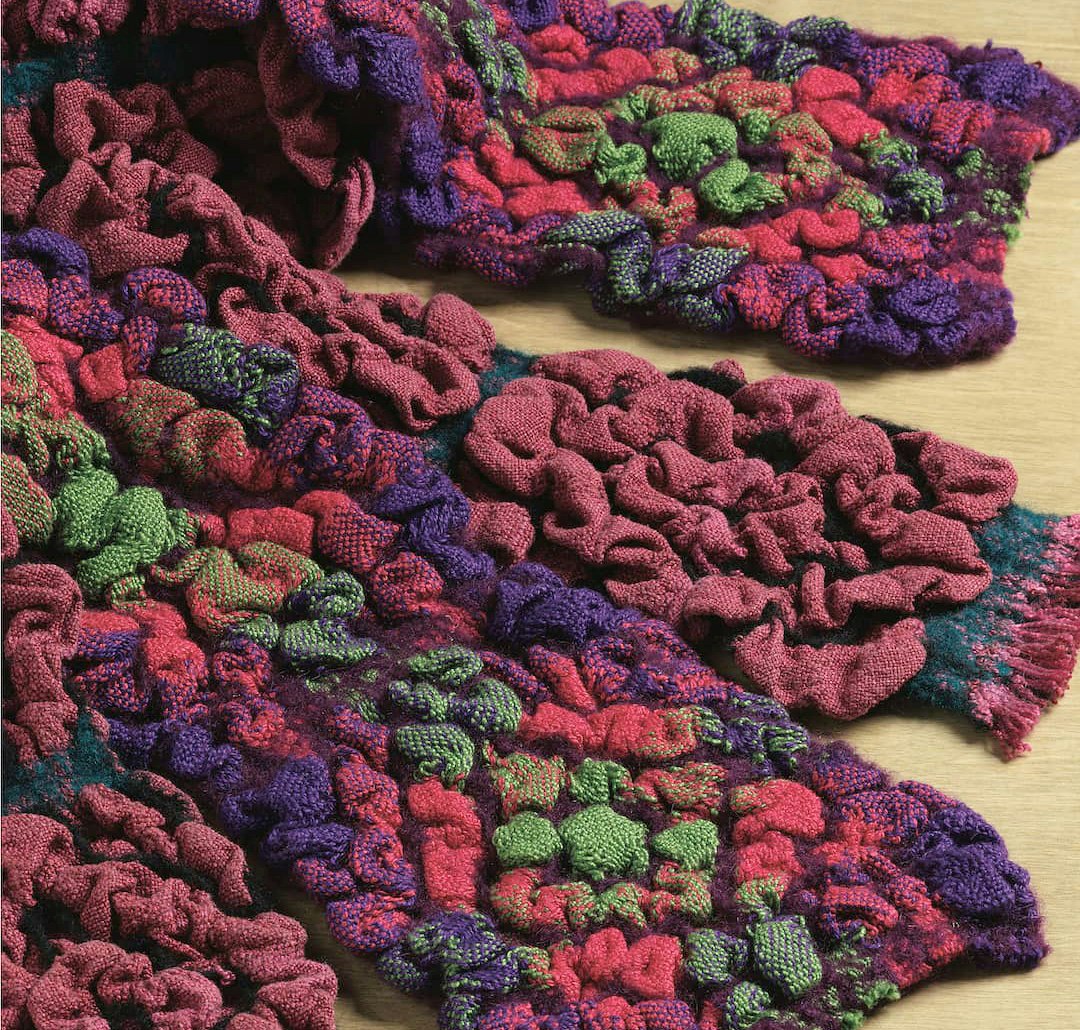 Karen Donde’s Dozen Roses Scarf design, from Handwoven‘s Jan./Feb. 2010 issue, uses deflected doubleweave with differential shrinkage to create three-dimensional curvy shapes. Photo by Joe Coca