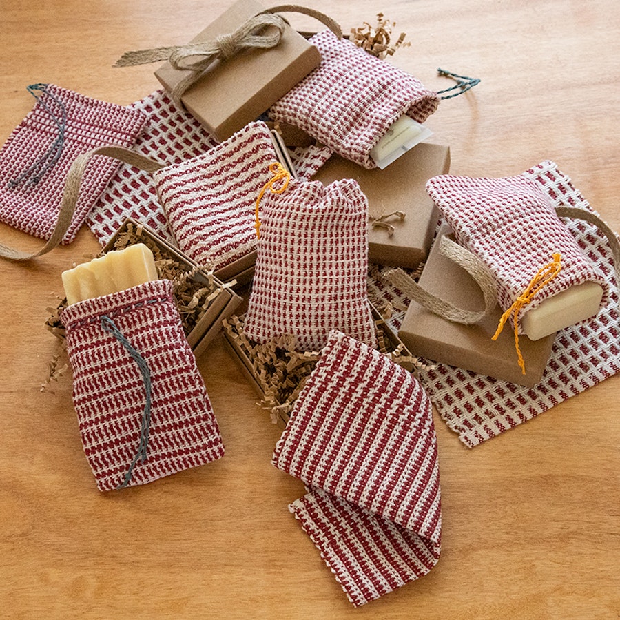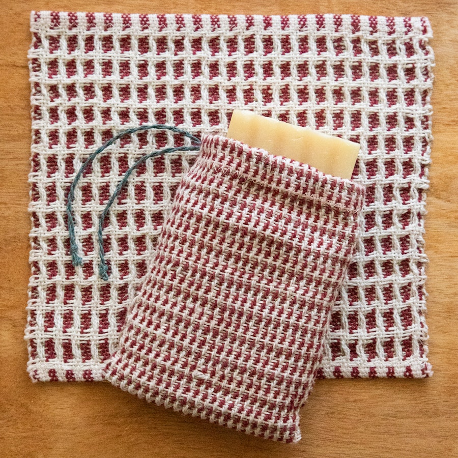LoginWeave 5 soap bags in tubular doubleweave and then change your warp sett and weave 4 coordinating face cloths. These WIFs can be used with this the subscriber exclusiveLather Up! web project.